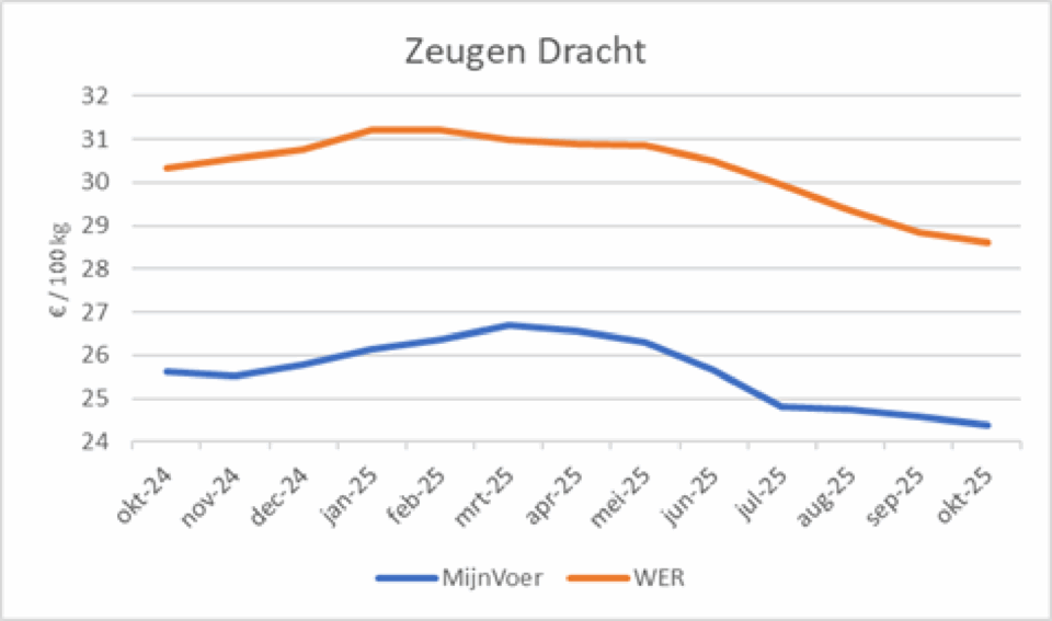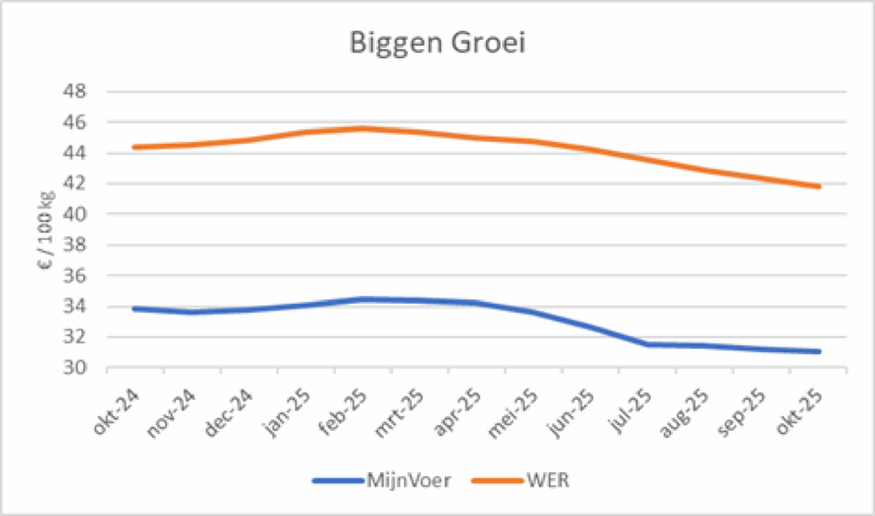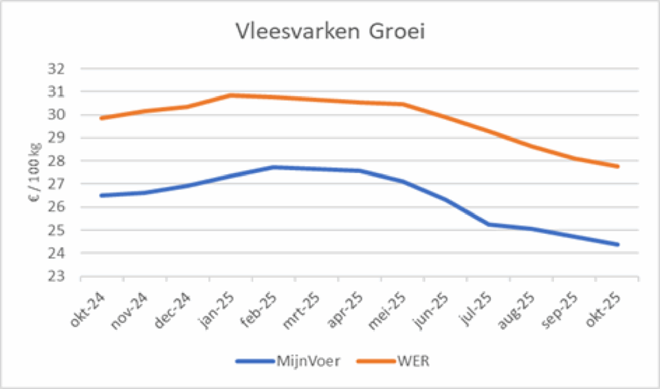 Onderzoek van Wageningen University & Research toont aan dat de kostprijs van een big en een vleesvarken in Nederland tot 16 eurocent per kg slachtgewicht kan dalen met onafhankelijk advies en het voerplatform MijnVoer. Dit komt door de combinatie van verbeterde zoötechnische prestaties en een scherpere voerprijs. Ongeveer de helft van deze besparing wordt gerealiseerd op het zeugenbedrijf, de andere helft kan bespaard worden in de mesterijfase, zo toont het onderzoek aan. Het onderzoek van Wageningen University & Research is mede gebaseerd op uitgangspunten die door MijnVoer zijn aangedragen.